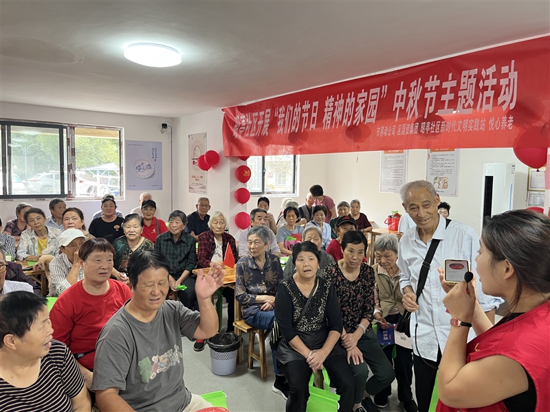 志愿者首先為大家講解中秋節(jié)的來歷、習(xí)俗以及神話故事等,隨后開展了猜謎領(lǐng)月餅趣味小活動(dòng),社區(qū)居民們踴躍參與,現(xiàn)場(chǎng)一片歡聲笑語。