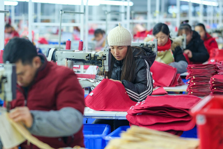 2024年1月18日,社區(qū)居民在紅安社區(qū)的鄉(xiāng)村振興就業(yè)車(chē)間工作。紅安社區(qū)是由易地搬遷安置區(qū)單獨(dú)成立的新社區(qū),